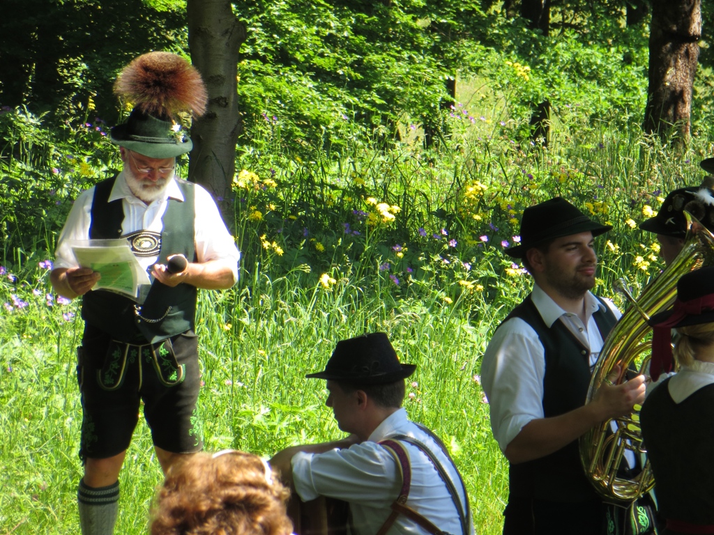 Der musikalische Spaziergang ist eine Art Fest, das seit einigen Jahren, ich glaube vom Schwangauer Kur- und Verkehrsverein, alljährlich veranstaltet wird. Man "wandert" von Station zu Station, wo verschiedene Kapellen den Gästen ein Ständchen bringen. Am Dorfweiher, den meine Leserinnen und Leser bereits von meinem Blott über das Fischerfest kennen, gibt es Kaffee und Kuchen, Bier, Würstchen usw.