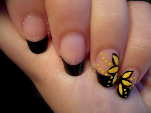 - mit schwarzem Nagellack (Flormar 313) eine French Manicure auf allen Nägeln machen und trocknen lassen