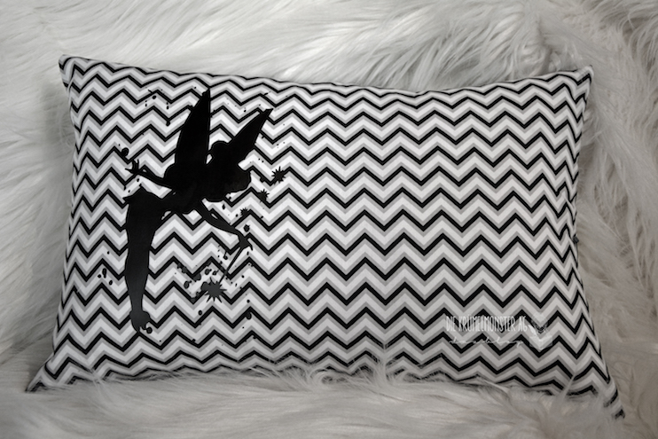 Sie hatte mir einmal erzählt, dass sie Disneys Tinker Bell ganz schrecklich gerne mag. Und weil es ein wenig schwierig ist, sie zu beschenken, kam mir die Idee vom Kissen mit entsprechendem Plott.