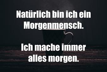 Auf Facebook teilen Vorige Folgende Natürlich bin ich ein Morgenmensch. Ich mache... Autor des Artikels : istdaslustig Zum Original-Artikel Natürlich bin ich ein Morgenmensch. Ich mache immer alles morgen. Hier geht es zum Artikel Mehr Lustiges auf www.istdaslustig.de Auf Facebook teilen Vorige Folgende Das könnte Ihnen gefallen Mehr