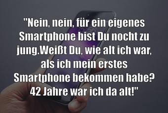 Auf Facebook teilen Vorige Folgende "Nein, nein, für ein eigenes Smartphone bist Du... Autor des Artikels : istdaslustig Zum Original-Artikel "Nein, nein, für ein eigenes Smartphone bist Du nocht zu jung.Weißt Du, wie alt ich war, als ich mein erstes Smartphone bekommen habe? 42 Jahre war ich da alt!" Hier geht es zum Artikel Mehr Lustiges auf www.istdaslustig.de Auf Facebook teilen Vorige Folgende Das könnte Ihnen gefallen Mehr