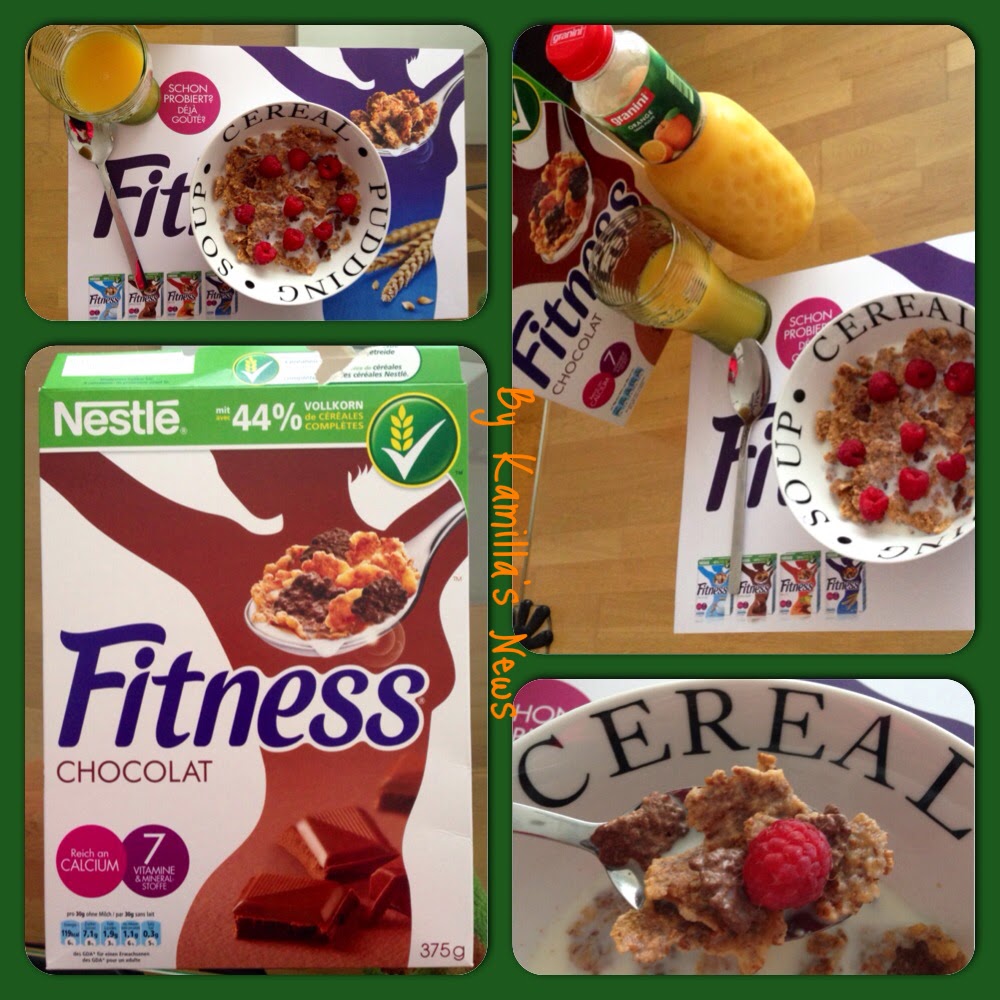 Am nächsten morgen nach Erhalt haben wir sofort die Nestle Fitness Chocolat Flakes versucht. Der ganzen Familie schmecken diese sehr gut. Ich habe meine noch mit Himbeeren verfeinert und dazu gab es Orangensaft von Granini. Mein Mann meinte das die Flocken ein bisschen zu gross sind er habe lieber kleinere Flakes. Ich finde es dürfte mehr schokoüberzogene Flakes haben es hat mir zu wenig drin denn diese sind am Leckersten :-) Meine Tochter verlangte gleich eine 2. Portion.