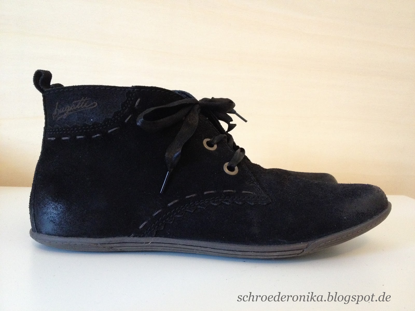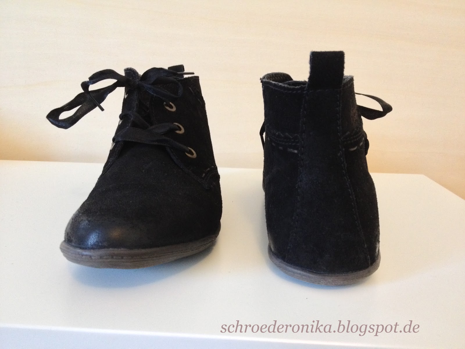 Vor einigen Tagen hab ich bei mirapodo im Sale ein ganz schickes Paar Halbschuhe ergattert: das Modell "Rihanna" von bugatti. Sie sind aus schwarzem Veloursleder, haben eine ganz toll bequeme Sohle und tragen sich daher super! Zu den auf den Fotos sichtbaren glänzenden Schnürbändern (die ja schon recht mädchenhaft aussehen) wurden noch ein paar schlichte schwarze Schnürsenkel mitgeliefert, welche den Schuh noch etwas lässiger erscheinen lassen. Hier könnt Ihr Euch meine neuen Lieblinge ansehen:
