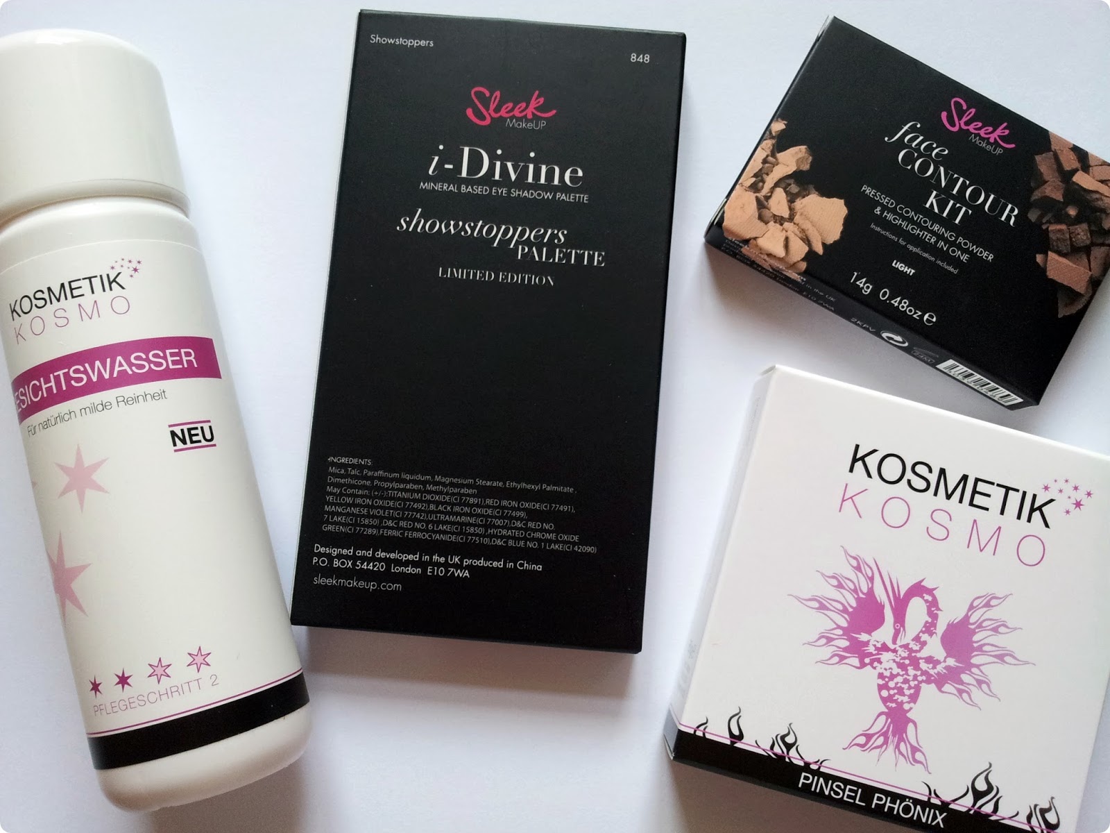 Meine Pinselseife ist leer gegangen. Und just in dem Augenblick, in dem ich mich entschlossen hatte, beim nächsten Müller-Besuch eine neue zu kaufen, kam der Newsletter von Kosmetik angeflattert mit dem Montagsschnäppchen "Pinselseife "Pinsel Phönix" zum halben Preis" O_o Mit der war ich schon immer zufrieden und da man ab 25€ keine Versandkosten zahlen muss, hat der Verstand mal wieder ausgesetzt und es sind noch die Sleek "Showstopper" Palette, das Sleek Contur Kit und ein Gesichtswasser in den Warenkorb gewandert.