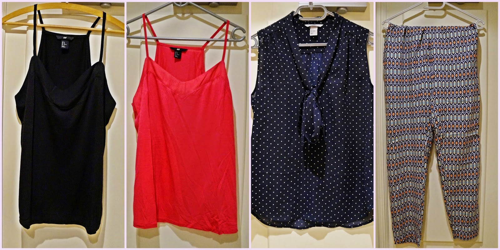 Jerseytops in schwarz und pink (Farbe leider nicht richtig erwischt :/) // ärmellose Schluppenbluse >> // Loose Fit Hose >>
