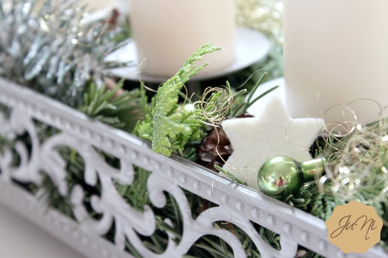 Aber wieso haben wir in der Adventszeit eigentlich so einen Kranz mit vier Kerzen?"Advent" stammt vom lateinischen Wort "adventus" und bedeutet "Ankunft". Erfinder des Adventskranzes ist der Theologe und Erzieher Johann Hinrich Wichern, den die Kinder immer fragten, wie lange es denn noch bis Weihnachten sei. Also hat er ein Wagenrad mit 19 kleinen roten Kerzen und 4 großen weißen Kerzen bestückt. Werktags hat er die kleinen Kerzen angezündet und an den Sonntagen die großen Kerzen. Die Kinder konnten also die Tage abzählen und die Wartezeit bis zum Fest wurde verkürzt. Daraus hat sich dann der Adventskranz entwickelt, der mittlerweile nur noch aus 4 Kerzen besteht - für jeden Adventssonntag eine. Tja, auch dieses Jahr habe ich wieder einen Adventskranz gebastelt, der dieses mal so gar nicht klassisch rund ist. Und hier kommen wir auch schon zum miniminimini-DIY für euch: Schnappt euch einfach eine Schale, einen Teller oder irgendein anderes flaches Gefäß (z.B. Serviertablett, ...), denn das bildet die Basis. Ich habe hier aus einem Dekoladen (kostet rund 10-15 €) ein viereckiges Gestell, welches auch direkt Vorrichtungen für die Kerzen zum Aufstecken hat. Das braucht ihr aber nicht zwingend. Nun bestückt ihr eure Schale mit allem Weihnachtsdekozeugs, das ihr so finden könnt: Zimtstangen, Tannenzapfen, getrocknete Orangenscheiben, kleine Christbaumkugeln, Filzsterne, usw. Schmückt die Schale nun mit etwas Tannenreisig oder Moos aus (findet ihr im Garten, Wald oder auf den Wiesen) und dekoriert rundherum mit den Dekoelementen. Nun setzt ihr noch 4 Kerzen rein und fertig ist euer "Adventskranz".Wichtig: passt auf, dass die Dekoelemente nicht zu nah an den Kerzen sind, damit diese nicht zu brennen anfangen. Habt ihr schon einen Adventskranz gebastelt, kauft ihr lieber einen oder steht ihr gar nicht auf diese Tradition? Habt 'nen schönen 1. Advent, ihr Süßen!