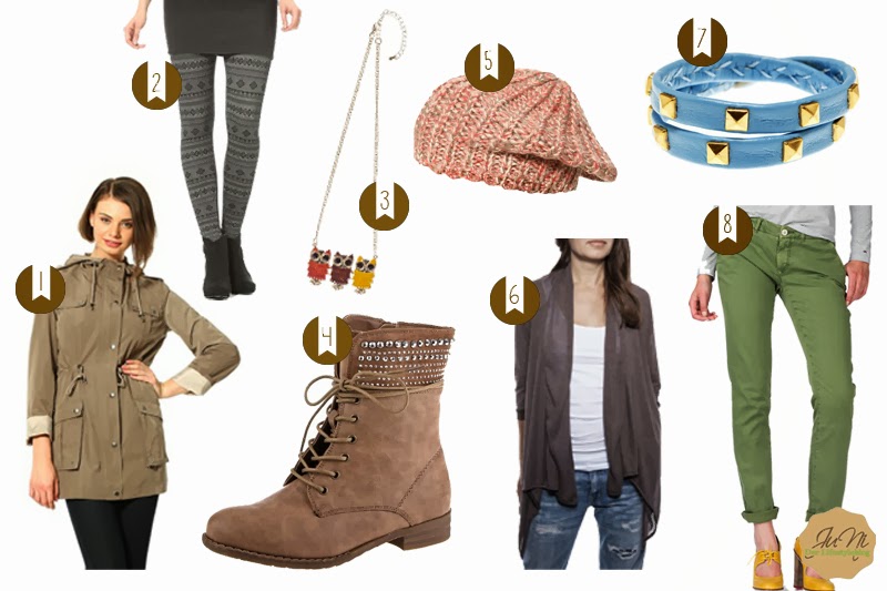 Die Leggings würde ich gerne zu meinen Strickkleidern (grau, weiß und schwarz) kombinieren. Die Eulenkette hat für mich wunderbare Herbstfarben und ist somit ein Herbst-Musthave.Die Stiefeletten finde ich besonders durch die Nieten am Schaft toll. Dazu noch warme, kuschelige Stulpen - perfekt!Eine Mütze darf im Herbst sowieso NIE fehlen - und im Winter dann erst recht nicht.Den Cardigan würde ich gerne mit einem weißen Top und einem bunten Loop kombinieren.Würde dieses Armband nicht wundervoll zu einer stinknormalen Jeans passen?Die Farbe dieser Chino finde ich einfach genial - muss ich haben! Wie gefällt euch meine Wishlist?Wäre etwas dabei, dass ihr euch auch bestellen würdet?