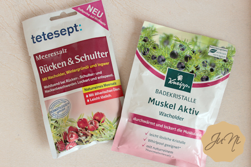 Wie ihr seht sind diesmal viele kleine Probiergrößen im Körbchen gelandet - ein Teil davon ist mit ins Hamburg-Reisegepäck gekommen, ein Teil wird für die Sporttasche gebraucht. Da habe ich solche kleinen Größen auch ganz gerne.Außerdem habe ich zwei Badezusätze gekauft, da ich derzeit wieder Nackenschmerzen hab. War damit schon beim Arzt, der meint, dass es verspannt und entzündet ist. Habe Tabletten, Salbe und Massagen / Fango verschrieben bekommen. Langsam wird es auch besser, ganz gut ist es aber noch nicht.