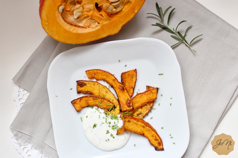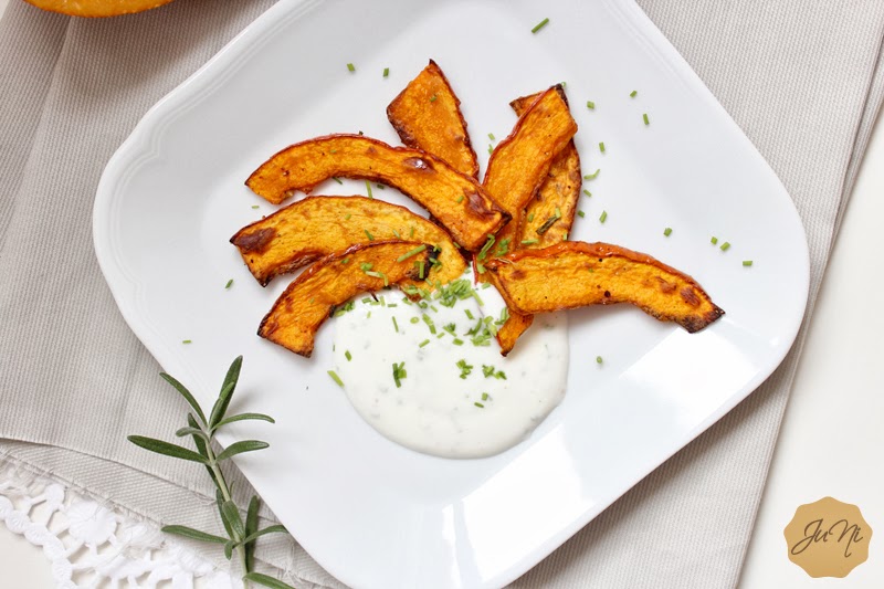 Los geht's mit leckeren Kürbispommes, die am besten mit einem Schnittlauchdip schmecken, dafür braucht ihr: