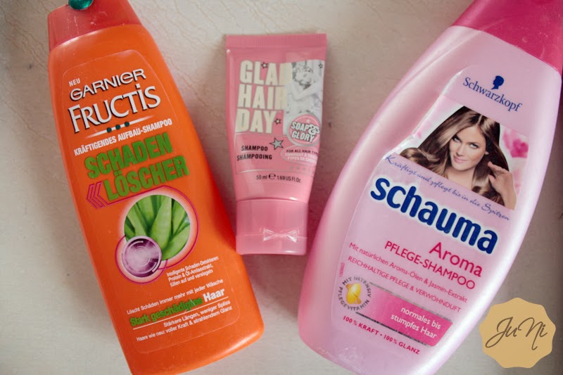 Das Garnier Fructis Schadenlöscher-Shampoo fand ich super, wird neu angeschafft, da die Haare danach super schön aussehen und sehr kräftig waren.Fehlkäufe waren leider "Glad Hair Day" von Soap&Glory und das Aroma Pflege-Shampoo von Schauma. Besonders von Soap&Glory bin ich enttäuscht, auch wenn es nur eine Probiergröße war. Mein Haar war danach total wirr und verknotet. Schade bei dem Preis (Probiergröße ca. 3,00€).