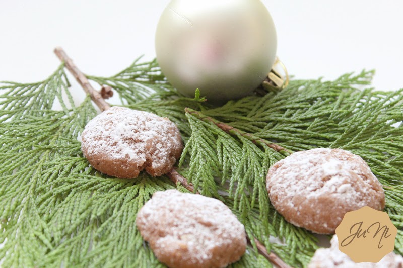 Zuerst habe ich dann diese Schokohäufchen mit Nüssen gebacken, denn Schokolade mit Nuss geht bei mir immer und zur Weihnachtszeit besonders. Zutaten:150g Zartbitterschokolade, in Stücken70g Butter, zimmerwarm30g Puderzucker1 Pck. Vanillezucker1 Ei175g Mehl1 TL Backpulver50g Nüsse, grob gehackt (ich hatte Walnüsse)1 Prise Zimt1 Prise Salzetwas Puderzucker zum Bestäuben