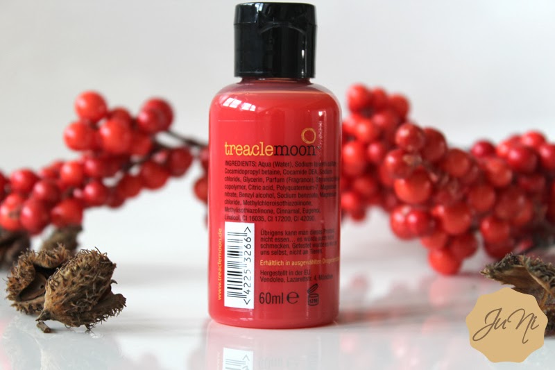 Ich muss sagen, dass ich über die Bloggerwelt auf diese Duschcreme aufmerksam wurde. Die Marke "treaclemoon" kannte ich schon etwas länger, da ich hiervon auch schon ein paar andere Duschgele und eine Bodylotion habe und bisher die Dürfte immer echt super fand. "Warm cinnamon nights" habe ich bei dm gefunden (in den Regalen wo es diese kleinen Pröbchen gibt und nicht im "normalen" Duschgelregal) und es kostet um die 0,60 €. Enthalten sind 60ml.