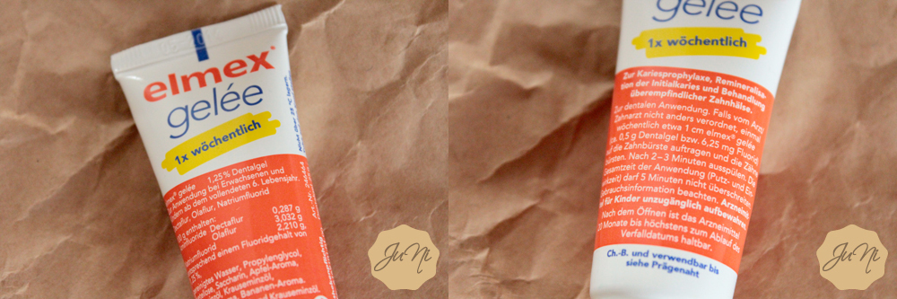 Einmal wöchentlich (meistens am Sonntag) benutze ich das "elmex gelée".Mein Zahnarzt hat mir dazu geraten, weil die Zähne durch das Gel widerstandsfähiger werden und es wie eine Art Schutzschicht wirkt.