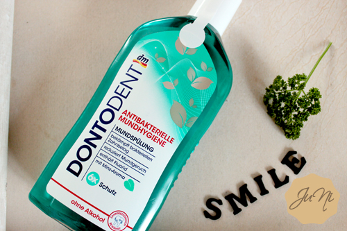 Direkt nach dem Zähneputzen verwende ich eine antibakterielle Mundspülung, wie auch die Handzahnbürste von "DONTODENT". Dies mache ich hauptsächlich zu Desinfektion, da derzeit meine Weisheitszähne durchbrechen und ich manchmal das Gefühl habe, dass sich trotz Bürsten da hinten Speisereste oder Bakterien absetzen könnten. Außerdem sorgt die Mundspülung für frischen Atem. ![[Ni] Zahnpflege | Routine, Tipps und Tricks [Ni] Zahnpflege | Routine, Tipps und Tricks](http://m3.paperblog.com/i/63/638171/ni-zahnpflege-routine-tipps-und-tricks-L-qRra4c.jpeg)