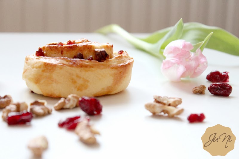 Herrlich, oder? Da habe ich natürlich gerne mitgemacht und mich sofort in die Küche gestellt und einen leckeren Hefeteig angesetzt. Herausgekommen sind leckere Zimtschnecken mit einer Cranberry-Walnuss-Füllung: Zutaten Hefeteig:500g Mehl1 Würfel Hefe80g Zucker80g Butter1 Prise Salz1 Ei200ml Milch1/2 TL Zimtetwas Vanille aus der Mühle Zutaten Füllung:etwas Buttergetrocknete Cranberrys (ca. 1 Handvoll)Walnüssen (ca. 1 Handvoll)2 EL brauner Zucker1 TL Zimt