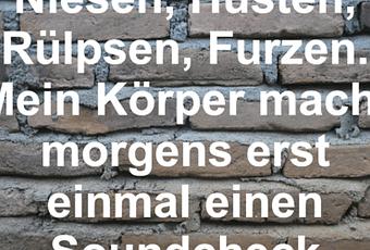 Auf Facebook teilen Vorige Folgende Niesen, Husten, Rülpsen, Furzen. Mein Körper... Autor des Artikels : istdaslustig Zum Original-Artikel Niesen, Husten, Rülpsen, Furzen. Mein Körper macht morgens erst einmal einen Soundcheck Hier geht es zum Artikel Mehr Lustiges auf www.istdaslustig.de Auf Facebook teilen Vorige Folgende Das könnte Ihnen gefallen Mehr