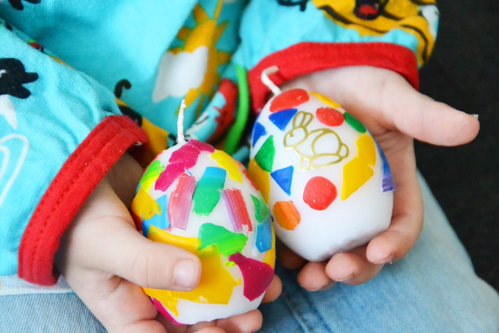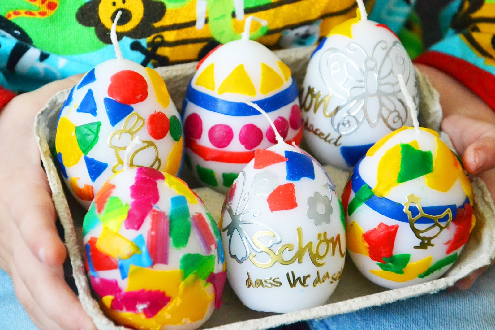 Diesmal haben wir aber auch Eierkerzen dekoriert mit bunten Wachsplatten und Verzierstickern die wir alle samt bei Dekoweltkreativ gefunden haben. Wir haben damals auch ein separaten Post über das verzieren gemacht. Wer sich den noch mal anschauen will kann dies hier tun.