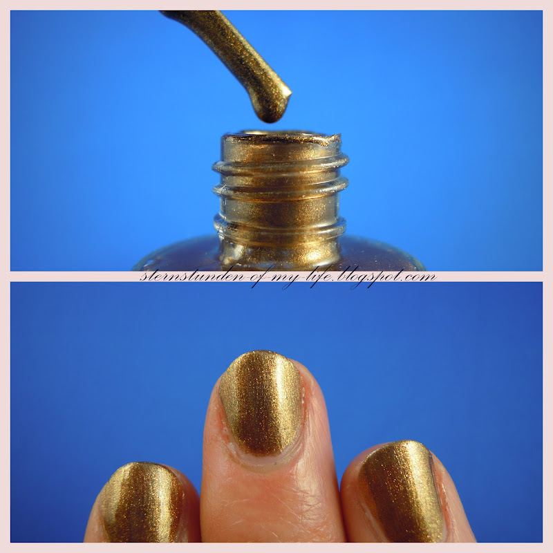 Obwohl ich nicht der Fan von Schimmer und Glitzer bin, ist es eine wunderschöne Farbe, die sich leicht auftragen lässt. Ich habe zwei Schichten aufgepinselt.