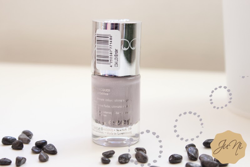 Den Farbton würde ich als einen hellen, pastelligen Fliederton mit Graustich bezeichnen. Er ist etwas sheer, nach zwei Farbschichten war er bei mir aber deckend. Besonders schön gefällt mir der Silberschimmer im Lack. Je nach Lichteinfall reflektieren die Partikel mehr oder weniger stark.