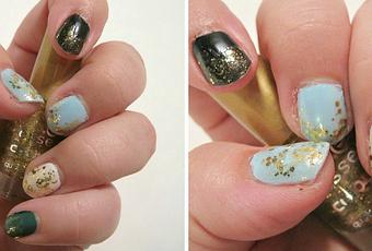 Diesmal waren es die Farben von meinem St. Patrick´s Day Nailart und da sie mir solo zu langweilig wurden, musste passend zu Goldmünzen ein wenig goldener Glitzer drauf.