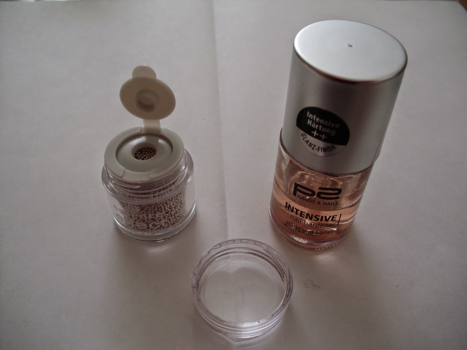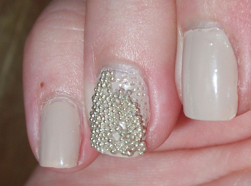 Dies war dann mein Ergebnis.Ich habe zwei verschiedene Methoden ausprobiert. Jeweils habe ich den Nagel vorher nochmal mit einem transparentem Lack lackiert, damit die Perlen auch auf etwas halten. Auf der einen Hand habe ich die Perlen "rausgeschüttet". Dabei sind die Perlen überall gelandet, nur nicht auf meinem Nagel ;)