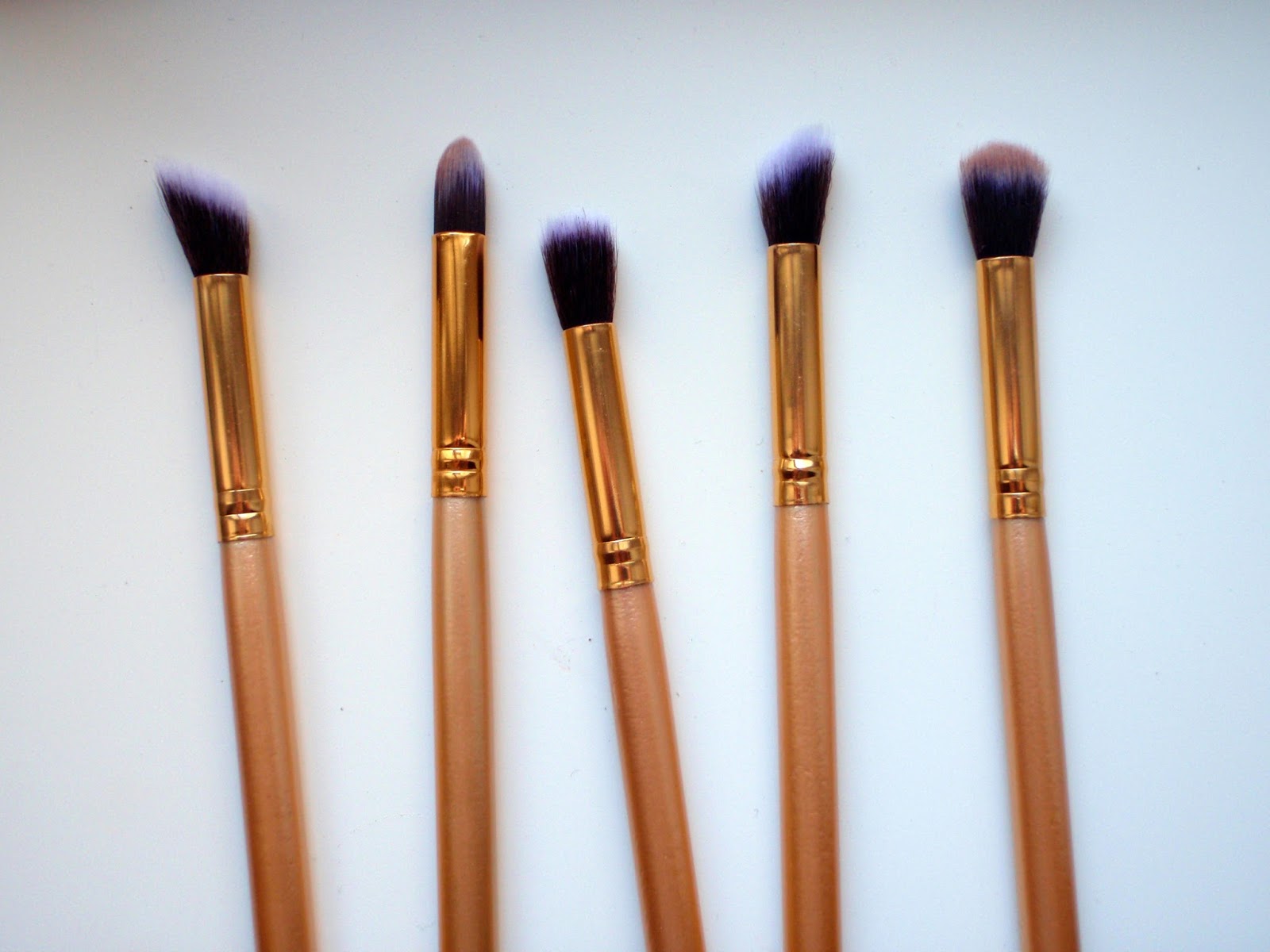 Hochwertiges PinselsetDas Herzstück meiner Pinsel ist auf jeden Fall dieses schöne Pinselset. Enthalten sind 10 Pinsel, je 5 Gesichts-und Augenpinsel. Die Pinsel bestehen aus Synthetikhaar und haben einen vergoldeten Stiel. Vor allem die Augenpinsel sind recht lang, was ich so bisher nicht gewöhnt war. Insgesamt ist die Qualität mit bh-cosmetics Pinsel zu vergleichen. Das Waschen war bisher kein Problem, die Pinsel haben keine Haare verloren & auch die Vergoldung hat keine Macken bekommen.Vom Bufferpinsel, über Bronzepinsel, Blendepinsel und präzisere Pinsel ist alles enthalten. Das Set kostet 21,92€, was für 10 Pinsel mit solcher Qualität ein angemessener Preis ist.