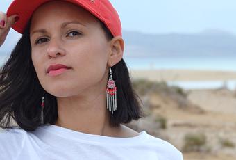 Rote Baseball Cap von Nike, Ohrringe von Terra Fuerteventura, Lippenstift Rouge Allure 136 Melodieuse von Chanel.