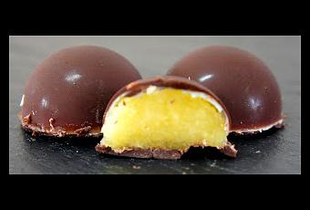 Anm. Die Hohlkörper hier wurden aus optischen Gründen im inneren noch mit weißer Kuvertüre ausgestrichen, dieser Vorgang ist von keiner geschmacklichen Relevanz. Kann also ersatzlos gestrichen werden.