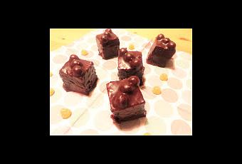 Jetzt die Schokoglasur zum Schmelzen bringen und die Würfel damit überziehen. Trocknen lassen, und.... aufessen.