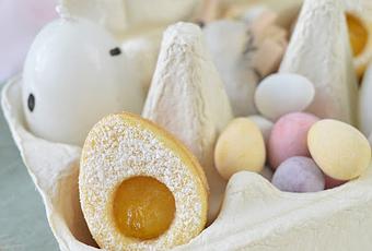 Da ja bald Ostern vor der Tür steht und somit für viele die Fastenzeit endet, dachte ich mir, ich backe mal Zitronenkekse in Form von Spiegeleiern. Gefüllt wurden die Kekse mit einer selbstgemachten, schön fruchtigen Orangenmarmelade - man kann die Spiegeleier aber auch mit einer andersfarbigen Marmelade oder zum Beispiel mit Lemon Curd füllen.
