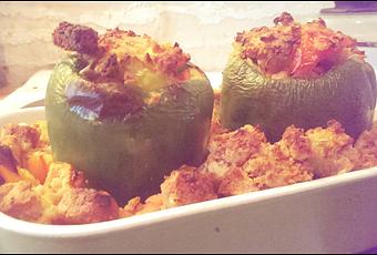 Ja, es ist mistiges Wetter, ja ich bin zu faul zum Einkaufen. Was gibt’s also heute zu essen? Der Blick in den Kühlschrank wirft die Frage auf, warum eigentlich von der bunten Paprikamischung immer die blöden grünen Paprikas über bleiben. Also was mit grünen Paprika. So. Paprika füllen ist doch lecker, oder? Aber jetzt Tofuhack einweichen und Reis kochen? Nä. Was sagt denn der Küchenschrank? Zwieback sagt er. Also dann – Zwieback-Füllung. Nach etwas Looten vom Kühlschrank, minimalem Aufwand und eine halbe Stunde später das Ergebnis: Mega-lecker. Wer hätt’s gedacht?
