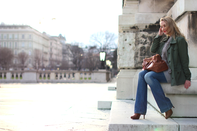 flared jeans - Diesel / sweater - S. Oliver / fur vest - Gerry Weber / lined Parka - Forever 21 / ankle boots - Deichmann / bag - Prada / necklaces - Madeleine Issinglocation - Hofburg