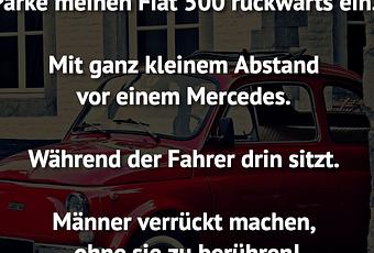 Auf Facebook teilen Vorige Folgende Parke meinen Fiat 500 rückwärts ein. Mit ganz... Autor des Artikels : istdaslustig Zum Original-Artikel Parke meinen Fiat 500 rückwärts ein. Mit ganz kleinem Abstand vor einem Mercedes. Während der Fahrer drin sitzt. Männer verrückt machen, ohne sie zu berühren! Hier geht es zum Artikel Mehr Lustiges auf www.istdaslustig.de Auf Facebook teilen Vorige Folgende Das könnte Ihnen gefallen Mehr