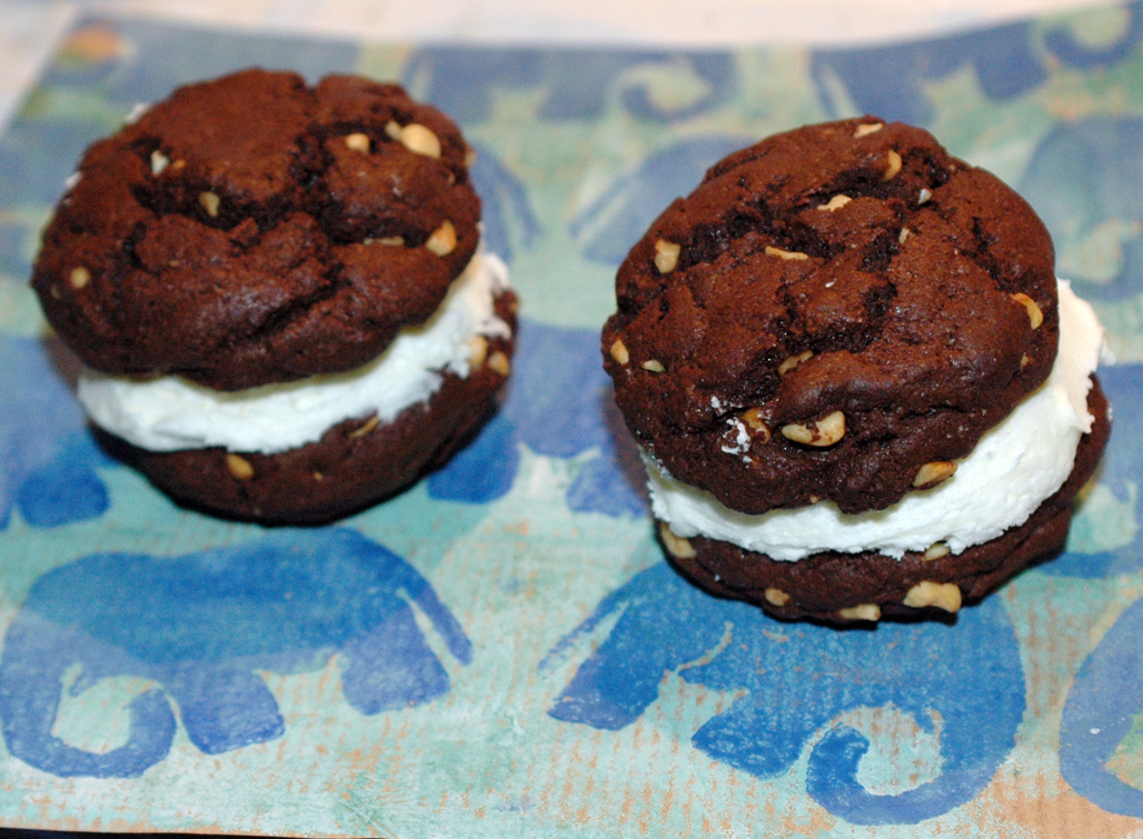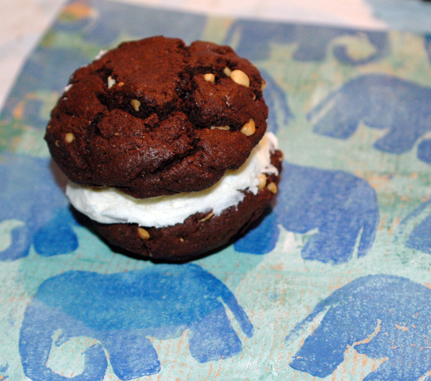 Diese Dinger sind mächtig. Nicht allein wegen der Kalorien, Zucker, Butter usw...nein, die Dinger sind einfach riesig, fast so groß wie ein Burger, und genau so muss man auch reinbeißen. Aber anders als bei Burgern fluscht da nichts raus, denn die Füllung bleibt recht gut zusammen, denn in dieser Füllung ist nicht nur Zucker und Butter. Nein, dem Ganzen wird durch eine einzigartige Zutat eine gewisse Stabilität verliehen: Marshamallow Fluff. Was das ist? Das sind Marshmallows, die man auf Brot streichen kann. Unglaublich, aber sowas gibt es tatsächlich. Es schmeckt einfach nur süß und klebrig, aber süchtig machend, wie Marshmallows eben. Dieses Zeug habe ich bei Karstadt und bei einem großen Edeka entdeckt, also man muss nicht unbedingt das Internet durchstöbern, um dieses Zeug zu kaufen.Beim nächsten Mal müsste der Teig für mich ein wenig saftiger sein und ich müsste viel weniger Fullüng auf die Kekshälften streichen, aber ansonsten, sooo lecker.Und vielleicht noch ein bisschen Peanut Butter in der Füllung wäre auch nicht schlecht.