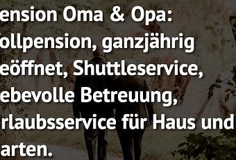 Auf Facebook teilen Vorige Folgende Pension Oma & Opa: Vollpension, ganzjährig... Autor des Artikels : istdaslustig Zum Original-Artikel Pension Oma & Opa: Vollpension, ganzjährig geöffnet, Shuttleservice, liebevolle Betreuung, Urlaubsservice für Haus und Garten. Hier geht es zum Artikel Mehr Lustiges auf www.istdaslustig.de Auf Facebook teilen Vorige Folgende Das könnte Ihnen gefallen Mehr