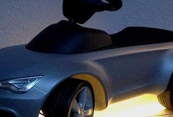 Ich muss sagen ich hatte meine Bedenken als Herr Z. mit der Idee ankam. Jetzt bin ich aber sehr begeistert wie cool der Audi - Bobycar jetzt aussieht.