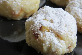 Den Teig auf bemehlter Arbeitsfläche zu Rollen formen, in ca. 1,5 cm Stücke schneiden. Diese Stücke zu walnussgroßen Kugeln rollen.