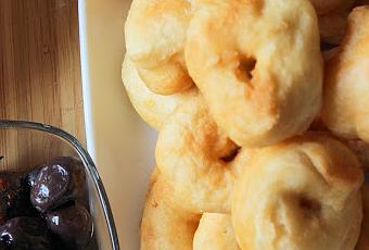 In einem Rührschüssel Mehl mit Salz, Pflanzenöl vermischen, In die Mitte der Mehlmischung frei lassen, Hefe darin mit etwas Wasser lösen lassen. mit übrige Wasser nach und nach zugießen und damit einen glatten Teig kneten. Den Teig in Schüssel mit Frischhaltefolie wickeln und ca. 30 Minuten in einem lauwarmen Ort gehen lassen. In einer Pfanne bei hoher Hitze Frittieröl heizen lassen. Inzwischen vom Teig in Wallnussgröße Stücken nehmen, im Hand kugeln und etwas drücken, mit Hilfe ihrem Finger jeweils ein Loch drücken. Die Ringe in heisses Öl beidseitig goldgelb frittieren und auf einem mit Küchenpapier bedeckte Teller entölen. Noch warm servieren.