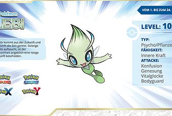 Besitzer von Pokémon Omega Rubin, Pokémon Alpha Saphir, Pokémon X und Pokémon Y, alles Spiele für Systeme der Nintendo 3DS-Familie, können sich Celebi, über das Geheimgeschehen‘-Menü direkt auf ihre Edition laden.