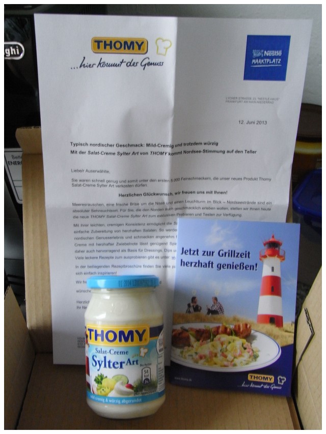 Ich bekam endlich mein Probeglas Thomy Salatcreme "Sylter Art".