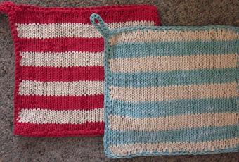 Häkeln ist mir viel zu anstrengend ( und mit arthrotischen Daumensattelgelenken auch nicht empfehlenswert) , deswegen strick ich sogar Topflappen. Diesmal fürs Tochterkind , die flügge wird und bald das Nest verlassen wird . Soifz ...... meine Kleine ....Früher haben die Mädels sich ja die "Aussteuer" selbstgemacht, aber obwohl Moni mal Häkeln gelernt hat, wird sie wohl kaum sowas fertigkriegen ... gegen Stricken ist sie sogar total restistent ;)Die ersten beiden Pottlappen sind jetzt fertig, ein paar werden noch folgen, zB auch als Patch gestrickt.Diese jedenfalls sind erstmal ganz normal eckig, gestreift, wie sie es sich gewünscht hat, doppellagig und gut groß, 20 x 18 cm.Das Garn Schachenmayr cotton linenNadeln 3,5der türkise hin und her gestrickt mit 40 Mder rote optimiert rundgestrickt mit 80 Mdie Kanten zusammengehäkelt ( sogar bei dem bißchen mußte ich Pause machen)Aufhänger dran und fertigFür diesen Zweck finde ich das Garn schön, aber einen Pulli würde ich davon nicht machen, es ist so unelastisch und längt sicher total aus, weil es nämlich reine Naturfaser ist, ohne ein Fitzelkchen stabilisierendes Plastik