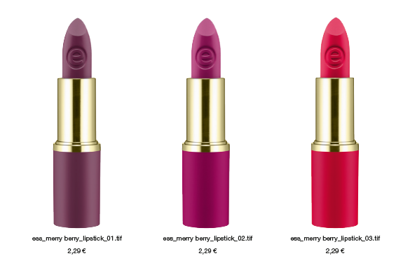 Endlich eine LE, die mir wirklich mal wieder gut gefällt. Sowohl die Produkte, als auch das Design finde ich recht spannend. Die LE ist von November- Dezember 2015 erhältlich & soll uns auf die kommende Festzeit vorbereiten... essence merry berry – eyeshadow Bright eyes. Die hochpigmentierten Lidschatten in Violett und Kupfer kreieren ein schönes, metallisches Ergebnis auf den Augen. Die softe Puder-Textur mit kreisförmiger Relief-Struktur auf der Oberfläche lässt sich leicht verblenden und ist langanhaltend. Erhältlich in 01 the perfect dress und 02 the masked ball. Um 1,99 €*.essence merry berry – false lashes Blickfang! In der festlichen Saison und auf Partys darf es ruhig etwas mehr Glam sein. Ideal sind da die false lashes, denn die verschiedenen künstlichen Wimpern sorgen für einen dramatischen Look. Das Set enthält einzelne Wimpern in zwei Längen, die die eigenen Wimpern optisch verlängern. Inklusive Wimpernkleber. Erhältlich in 01 tonight, i'll be the one. Um 2,99 €*. essence merry berry – lipstick Shine vs. matt. Die Lippen werden mit den langanhaltenden lipsticks in dunklem Berry, intensivem Berry-Pink und leuchtendem Rot zum Blickfang. Berry und Berry-Pink verleihen einen dezenten Glanz, während die Lippen in Rot mit einem angesagten matten Finish beeindrucken. Erhältlich in 01 let's the berry-tales begin, 02 pink & perfect und 03 red rocks. Um 2,29 €*.essence merry berry – highlighter powder Shimmering stars. Die leichte, pudrige Textur des Highlighters kommt in stimmungsvoller Sternen-Prägung. Der Teint erhält einen effektvollen, subtilen Gold-Schimmer, der das Gesicht zum Strahlen bringt. Erhältlich in 01 i love my golden pumps. Um 3,29 €*. essence merry berry – scented gold dust powder Body dust. Das Puder kreiert einen feinen, dezent duftenden Goldschimmer auf Dekolleté und Körper für schöne, strahlende Akzente. Der runde, goldfarbene Flakon mit Ballonzerstäuber ist ein toller Hingucker im Bad. Erhältlich in 01 i love my golden pumps. Um 3,49 €*. essence merry berry – nail polish Luxus-Lacke! Die Nägel leuchten im Winter in dunklem Violett, schimmerndem Lila, intensivem Berry-Pink und strahlendem Rot. Sie erhalten ein glänzendes Finish, das ultra-deckend und langanhaltend ist. Der Flakon mit goldenem, kugelförmigem Verschluss macht die Nagellacke zu besonderen Schmuckstücken. Erhältlich in 01 the masked ball, 02 purple with purpose, 03 pink & perfect und 04 red rocks. Um 1,99 €*. Außerdem gibt es noch einen goldenen Glitzerlack in der Farbe "01 I love my golden pumps". ( auf dem Bild ganz links) essence merry berry – stripes nail stickers Special stripes! Die coolen, selbstklebenden Streifensticker in Kupfer, Gold und Rot mit metallischem Effekt kreieren schnell und easy coole Nail-Art-Styles. Erhältlich in 01 i save the last dance for you. Um 1,49 €*.essence merry berry – hair fragrance Parfum & Pflege! Das spezielle hair fragrance verleiht den Haaren dezenten Goldstaub mit „like the party of my life“-Duft. Zusätzlich ist das Haar leichter kämmbar, erhält Glanz und fühlt sich weich sowie gepflegt an. Erhältlich in 01 i love my golden pumps. Um 3,49 €*.FazitMir haben es vor allem die zwei lila Lippenstifte angetan. Auch das Haarparfum, den Highlighter & den Kupfer-Lidschatten werde ich mir auch einmal anschauen. Gefällt euch etwas aus der LE?