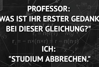 Auf Facebook teilen Vorige Folgende PROFESSOR: "WAS IST IHR ERSTER GEDANKE BEI... Autor des Artikels : istdaslustig Zum Original-Artikel PROFESSOR: "WAS IST IHR ERSTER GEDANKE BEI DIESER GLEICHUNG?" ICH: "STUDIUM ABBRECHEN." Hier geht es zum Artikel Mehr Lustiges auf www.istdaslustig.de Auf Facebook teilen Vorige Folgende Das könnte Ihnen gefallen Mehr