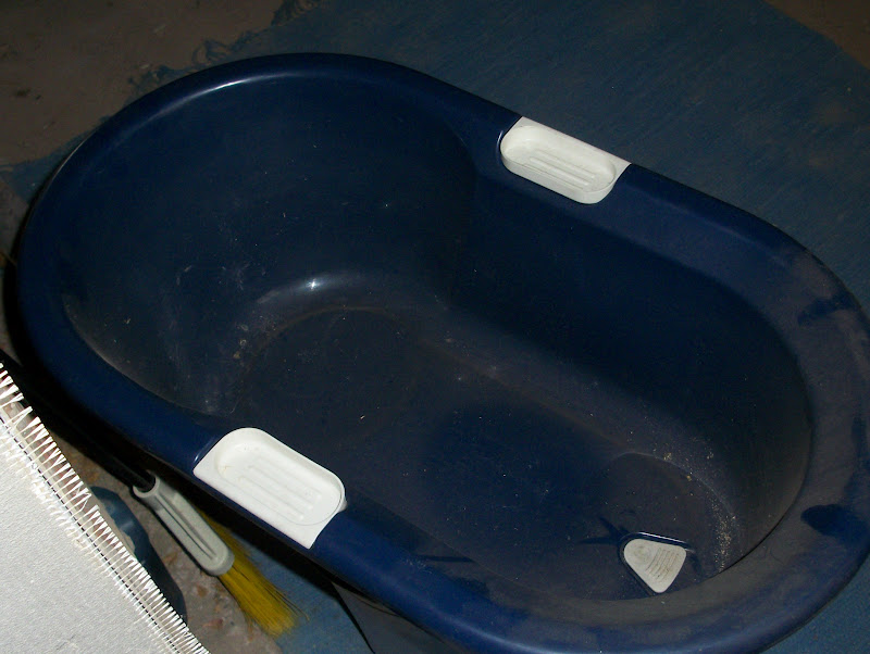 Badewanne, in der Töchterlein als Baby gebadet wurde und die jahrelang auf dem elterlichen Dachboden herumgedümpelt ist....