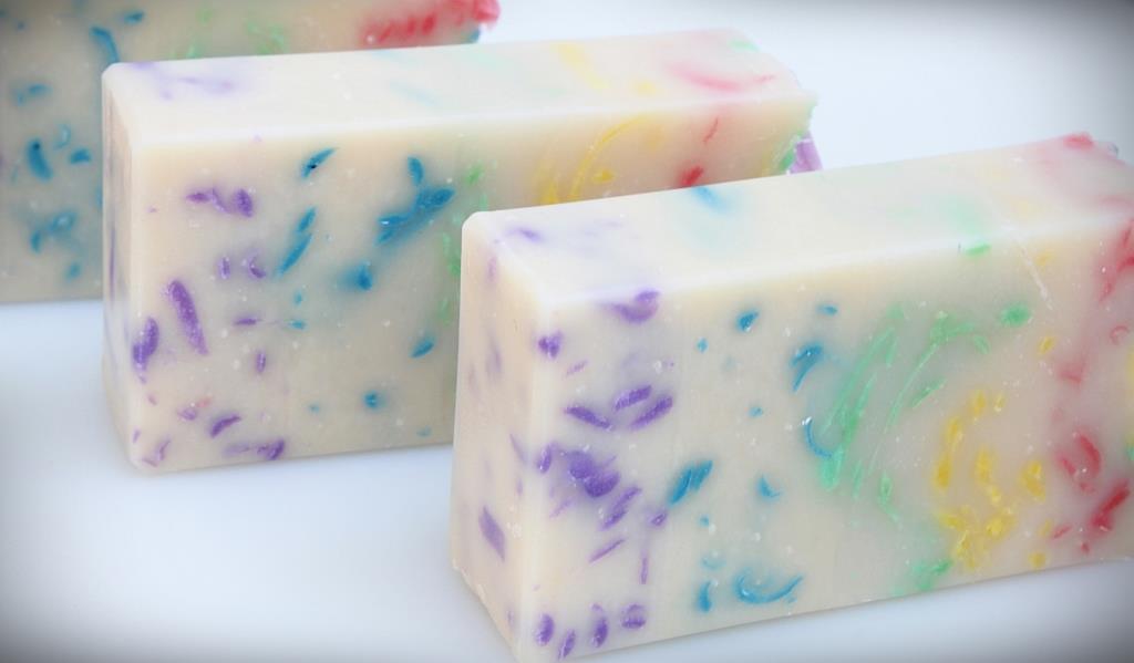 Ich habe die Idee zu dieser Seife von Pinterest. Ich wollte eine "fröhliche" Seife. Also schnell Seifenspäne geraspelt, Rezept, Duft ausgesucht und herausgekommen ist die hier: