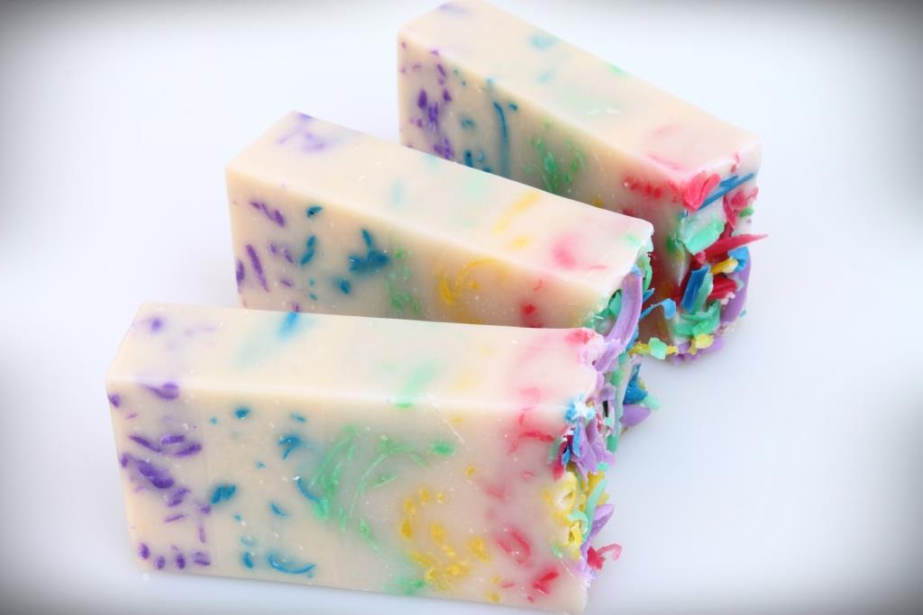Ich habe die Idee zu dieser Seife von Pinterest. Ich wollte eine "fröhliche" Seife. Also schnell Seifenspäne geraspelt, Rezept, Duft ausgesucht und herausgekommen ist die hier: