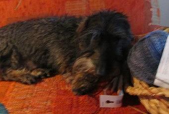 macht dem kleinen Hund so gar nichts aus, und schon gar nicht, wenn frau fleißig nadelt und er es sich gemütlich machen darf.