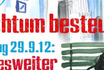 Ein gutes Arbeitspapier, welches sicher nicht nur bei der Demonstration am 29.9.2012 zum UmFAIRteilen-Aktionstag um 11.30 Uhr auf dem Potsdamer Platz, eine große Leserschaft finden wird. Initiator dieser Aktion ist das Bündnis "Umfairteilen – Reichtum besteuern!", zu dem u.a. drei Organisationen gehören, deren Mitglied ich bin: die Volkssolidarität, die Gewerkschaft ver.di und natürlich DIE LINKE.