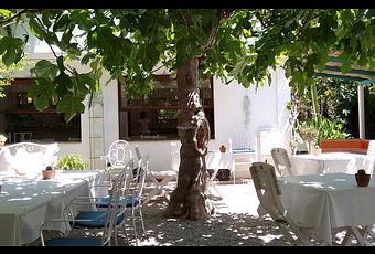 Vegetarisches Restaurant in der Pension Bellavista in Port De Pollença. Im Restaurante Bellaverde, im Schatten der Jahrhunderte alten Feigenbäume im Garten, können Sie beste, gesunde und hochwertige vegetarische und vegane Küche genießen.