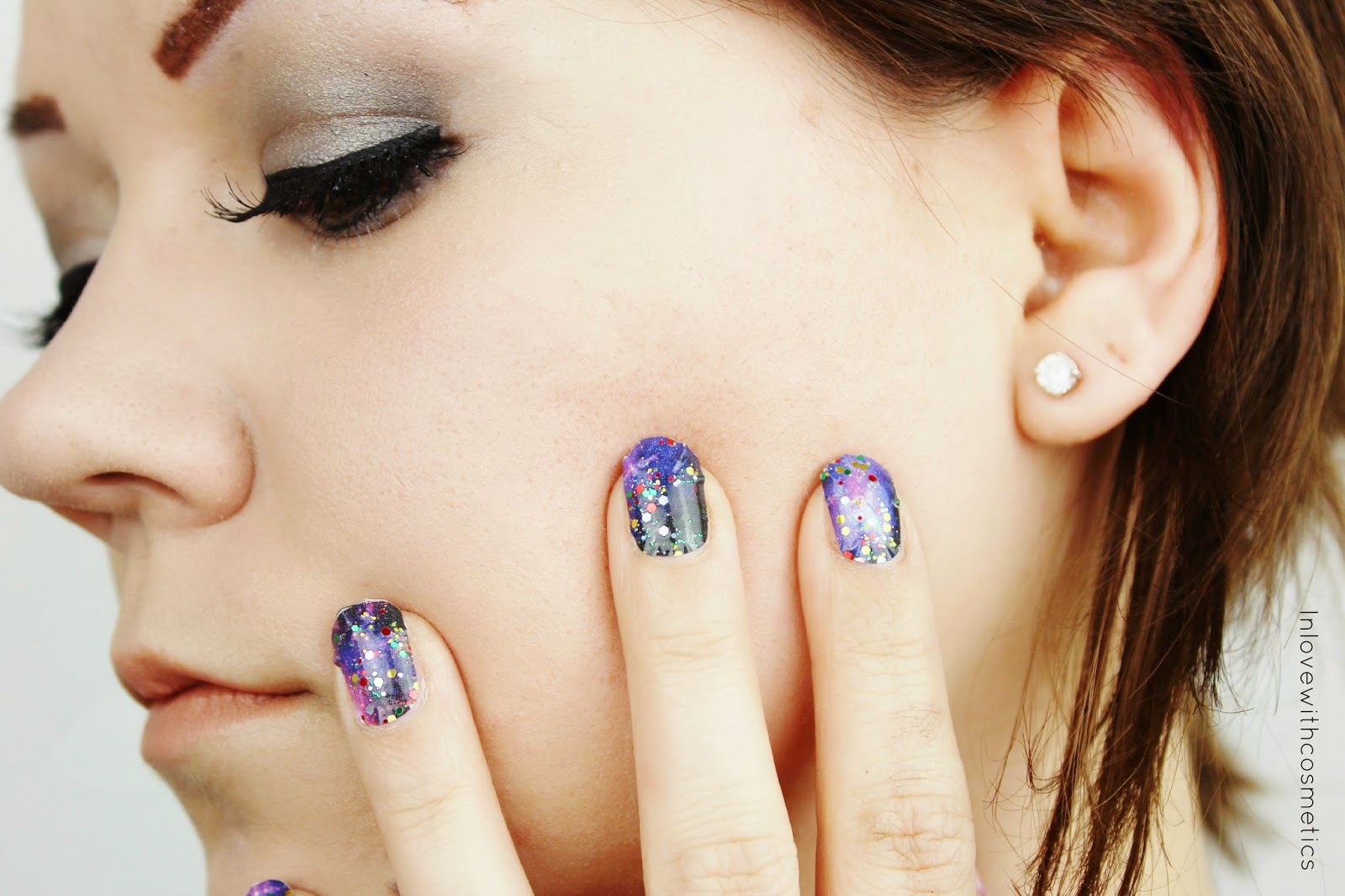 Ich stehe ja im Moment total auf Nagelfolien. Es geht schnell und die Nägel sehen einfach top aus!Das "Design" fand ich ganz putzig - es erinnert an Weltall - toll für Party machen.Hier hat man die Möglichkeit den ganzen Nagel zu bekleben und zusätzlich hat man auch Frenchspitzen dabei :) Also 2 Nageldesigns - wenn die Foliengröße bei euch passt ;)